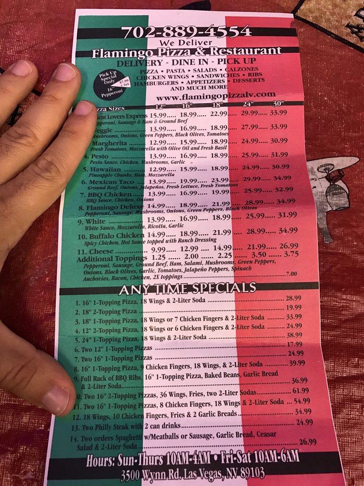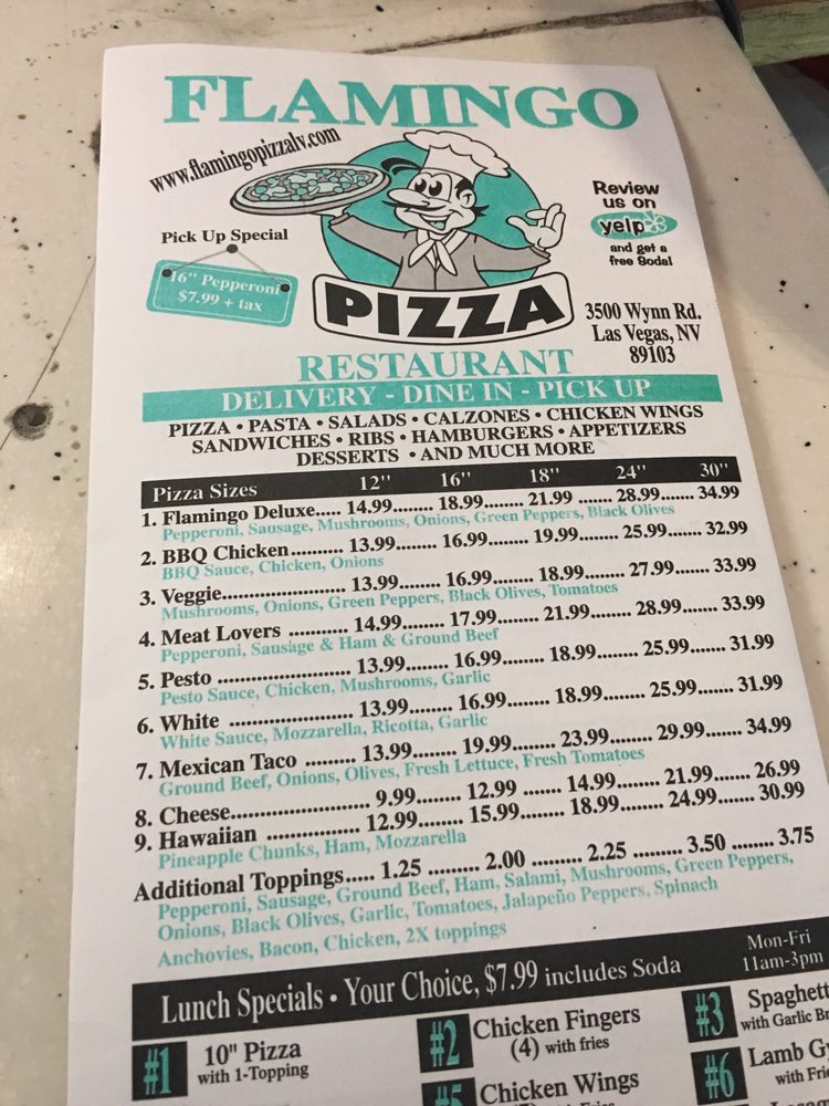 Welcome to Flamingo Pizza, your go-to destination for delicious pies in Las Vegas. Nestled at 3500 Wynn Rd, this casual eatery blends vibrant flavors with a friendly atmosphere, ideal for groups or a cozy family dinner. With a menu designed to please every palate, Flamingo Pizza offers more than just classic options; expect enticing selections like their acclaimed white pizza, loaded with rich feta cheese.