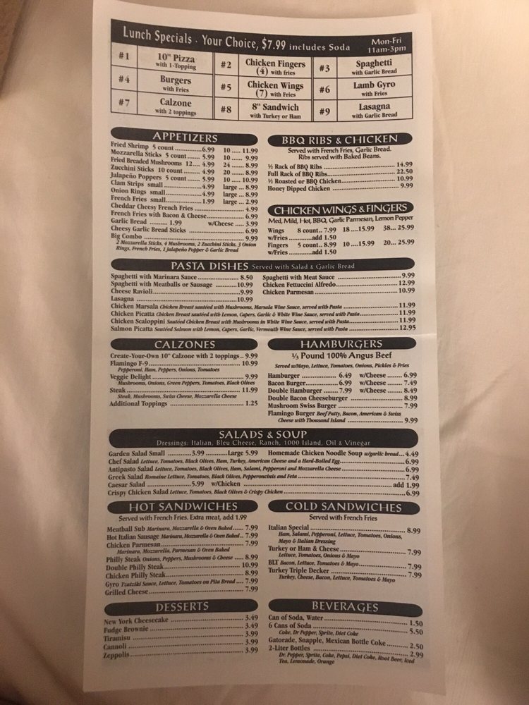 Whether you dine in, takeout, or opt for delivery, Flamingo Pizza ensures a meal worth remembering—quick service, flavorful dishes, and a commitment to customer satisfaction stand at the heart of their service. Come and take a bite!